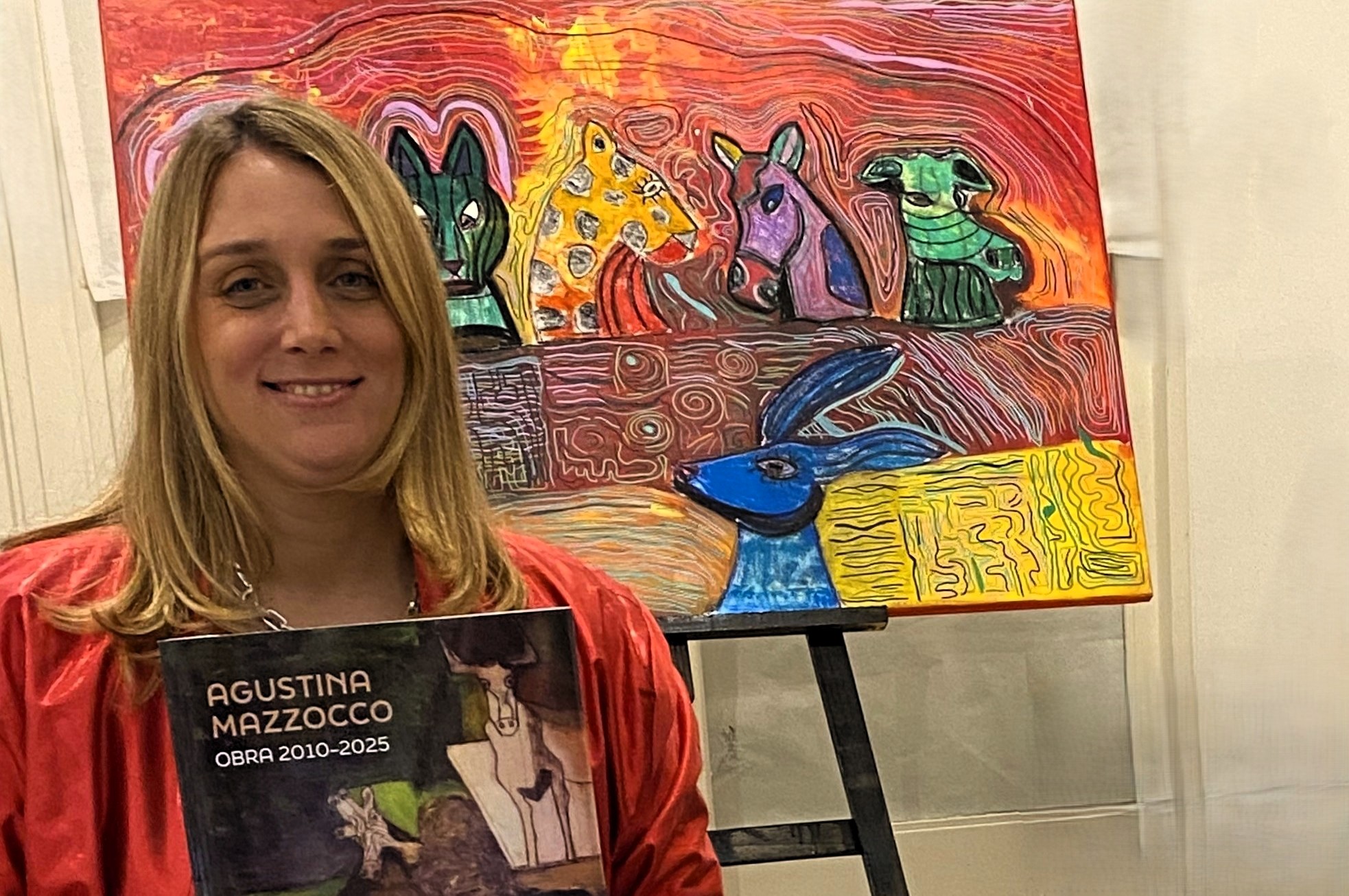 Una sala colmada recibió con energía la presentación del nuevo catálogo de la artista visual Agustina Mazzocco. La presentación estuvo a cargo de los artistas Marcela Davidson y Pedro Roth. Él destacó la importancia de invertir en arte y apuesta por la obra de esta joven artista. Ambos han compartido jugosas experiencias como cuando en pandemia se juntaron con el artista Roberto Plate a pintar juntos.