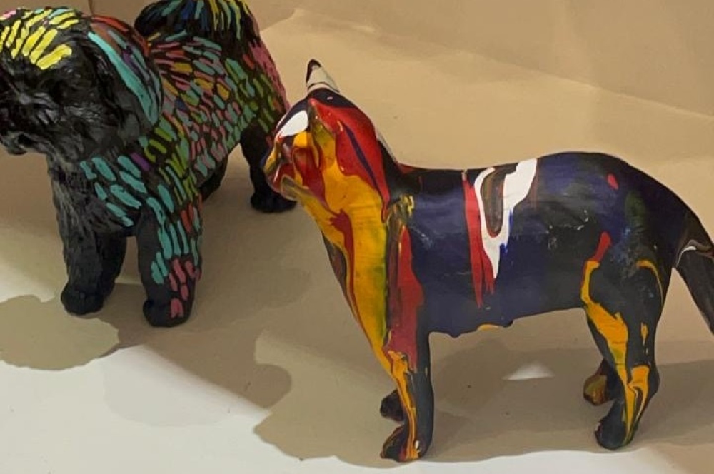 En sus clases para niños y adultos, el alumno se puede llevar su propia versión de La noche estrellada de Van Gogh o un perro intervenido con pintura. Uno de los fuertes de Agustina Mazzocco es la docencia.