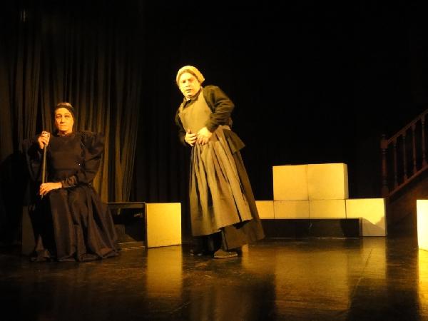 La rigurosa madre que –con su bastón de mando- exige respetar costumbres y tradiciones es representada por Ricardo Casime en un estupendo trabajo de composición. La elección de un hombre para el papel le otorga la fuerza dictatorial –reflejo del momento que se vive en su tierra- y el tinte de adustez que debe tener el personaje, contradictorio, egoísta, exacerbado ante la muerte de su marido y el consecuente luto que durará 8 años (“en donde no deberá entrar ni el viento de la calle”).