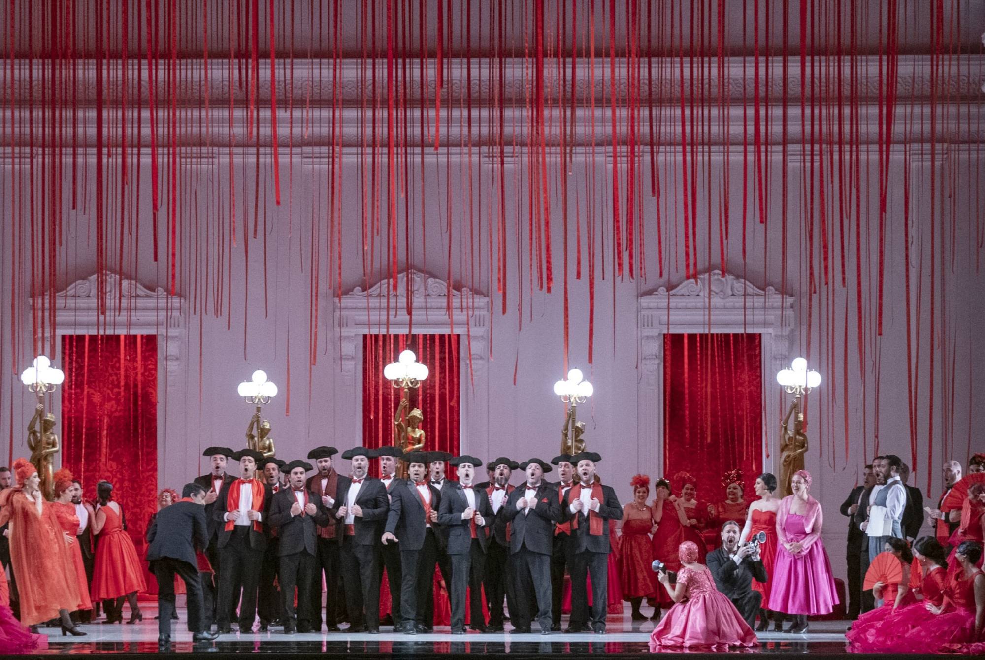 El vestuario de Renata Schussheim, festivo y a la vez distinguido, se acopló con armonía a esta estética. El rojo cobró relieve en el cuadro de las gitanillas, con vestidos y abanicos de exquisita estampa, amplificados por los diseños vigorosos de la artista; y la entrada de los matadores dio lugar a uno de los pasajes más logrados: movimiento, color y voces confluyeron en un momento de verdadera brillantez. La coreografía, precisa y simpática, fue interpretada con soltura por todo el elenco.
