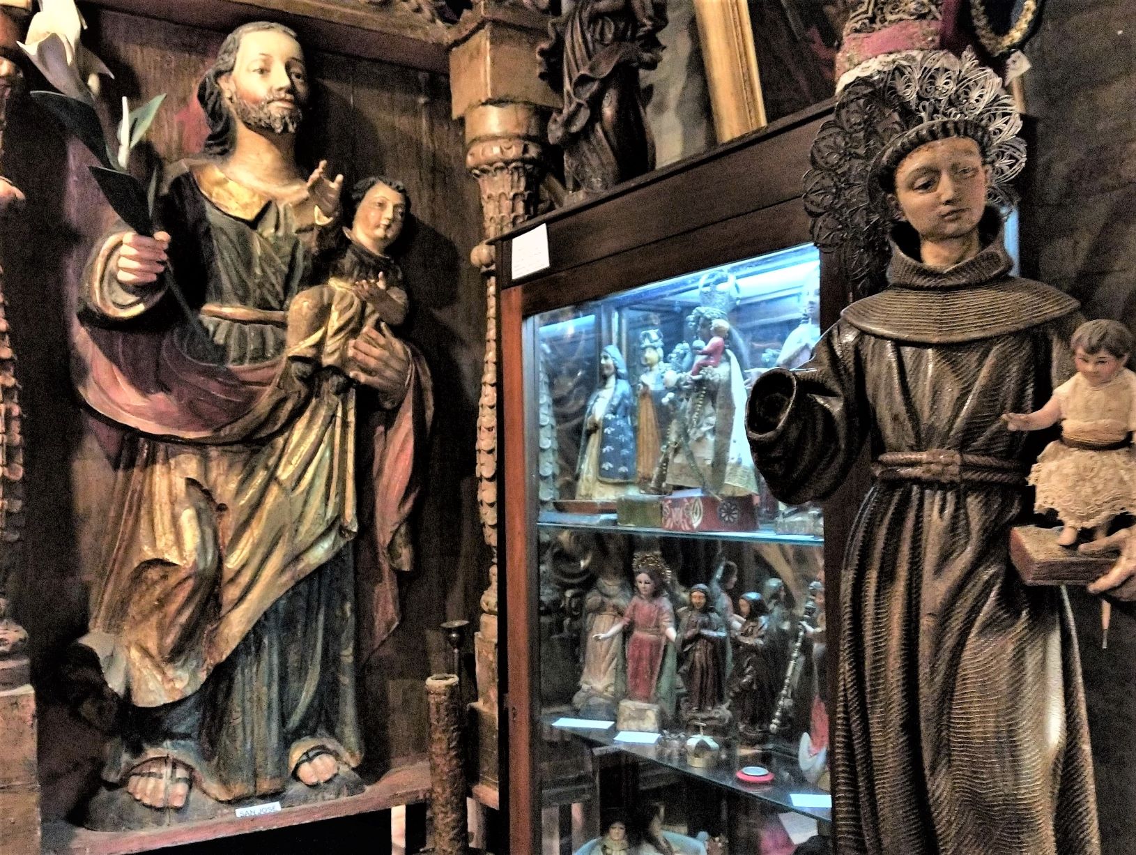 En la capilla se observa un conjunto de incalculables piezas que sorprende por su variedad y calidad artística. Son elementos de distintos orígenes, desde napolitanos a coloniales hispanoamericanos, enlazados con arte popular religioso más actual. Hay vestiduras eclesiásticas, mortajas, lienzos, muebles y objetos religiosos. En una sala se exhibe el trabajo de restauración. Cada año, desde el 8 de diciembre hasta el 7 de enero, se exhibe también un pesebre que complementa esta enorme y mística antología.
