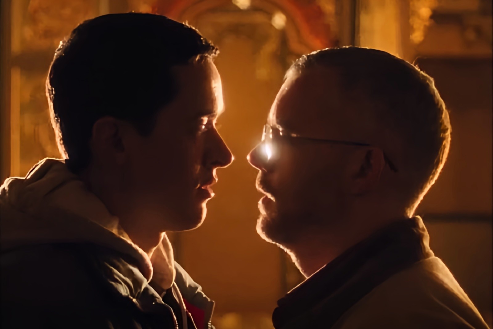 Tom Blight entrega una actuación intensa como este joven que vive en pánico constante. Cada mirada, cada gesto lo traiciona. No actúa la ansiedad: la respira. El miedo se imprime en su rostro y se potencia con su cuerpo. Russell Tovey, en el papel de Andrew, aporta calma a la tormenta, aunque se trata de una calma peligrosa. Conoce esas batallas internas, ya las peleó. La química entre ambos fluye sin artificios: el amor crece en silencio, en gestos mínimos, en la tensión de lo prohibido.