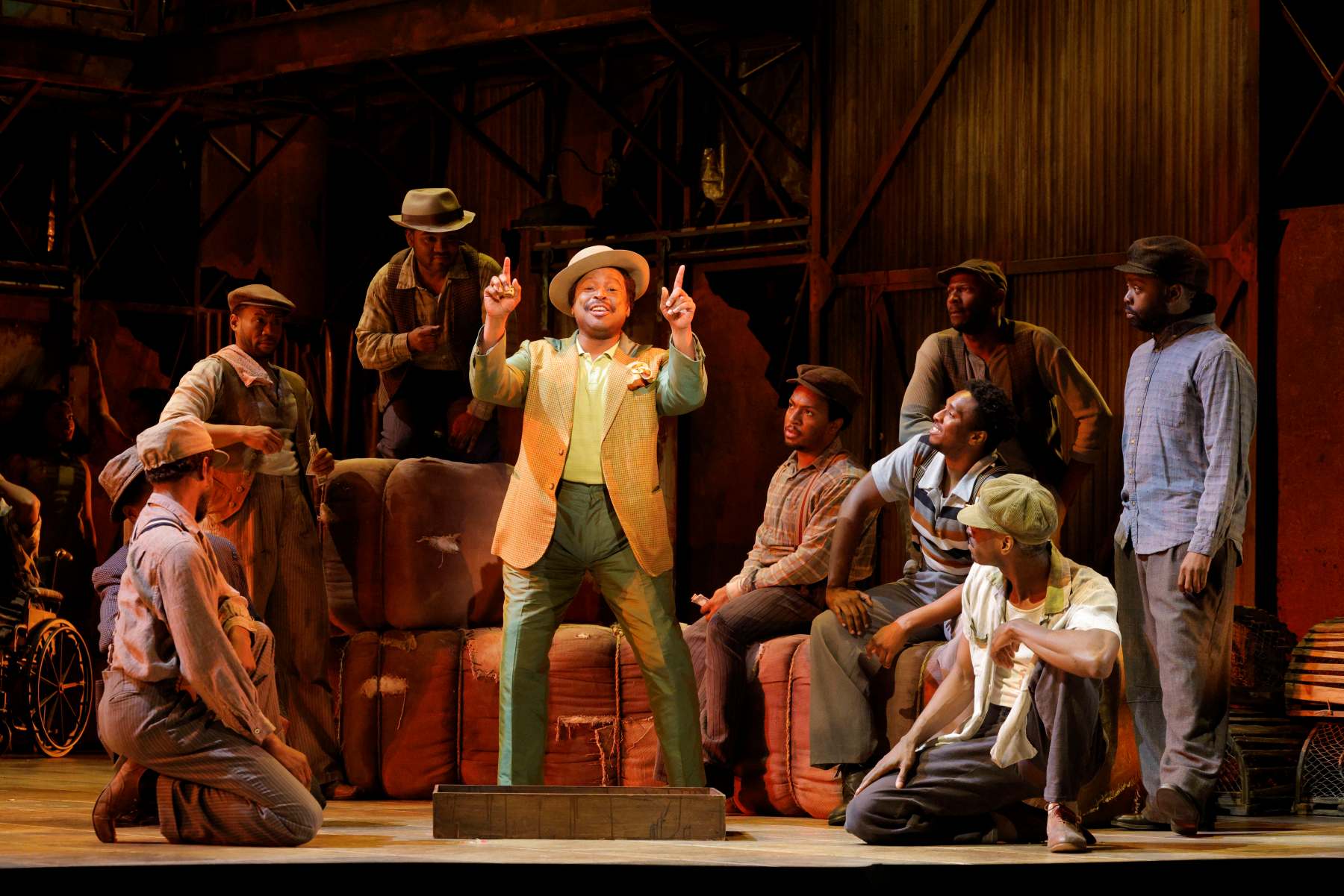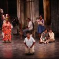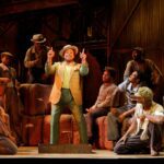 La iluminación de Mark McCullough —sutil pero funcional y precisa— transforma el ciclorama en cálidos atardeceres o amaneceres brillantes. Durante el acto del huracán, el pueblo entero se refugia mientras un ventilador pendula sobre sus cabezas. Tras los azotes del viento, las estructuras colapsan al compás de los crujidos: es el choque de las placas metálicas que se desmoronan. El resultado es casi cinematográfico.