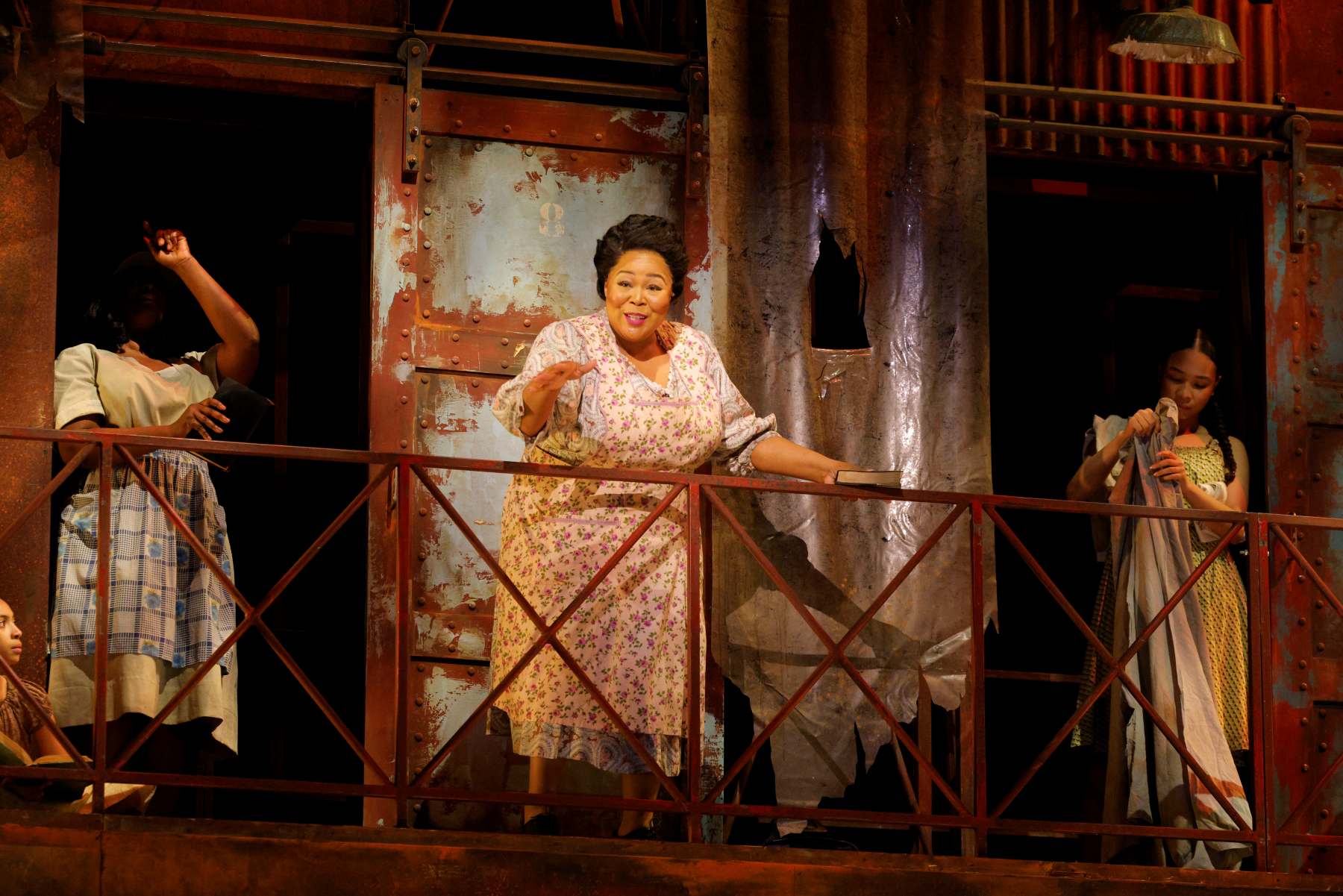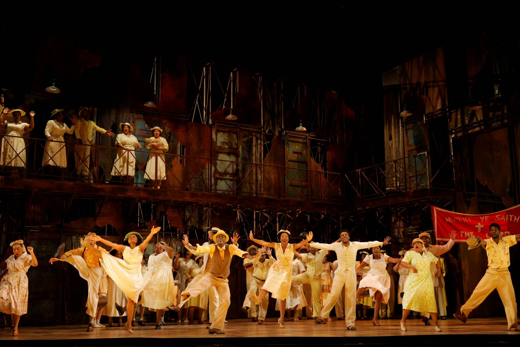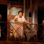 Con depurada dirección escénica de Francesca Zambello, esta producción de la Washington National Opera regresa al Kennedy Center veinte años después de su estreno. La escenografía de Peter J. Davison continúa hilvanando el trazo artístico del lienzo inicial. Su puesta, más contenida y depurada que en otras versiones, recrea Catfish Row con economía expresiva. Las pequeñas viviendas se asoman con sus derruidas fachadas de metal corrugado, con predominantes tonos anaranjados que evocan el óxido y contrastantes destellos de verdes y azules apagados. Como sus habitantes, los frentes de las casas se encuentran desgastadas por la sal, el sol y el sudor. Por momentos, el vestuario de Paul Tazewell, especialmente en tonalidades pastel, se amalgama de tal forma que ofrece un atractivo deleite visual.