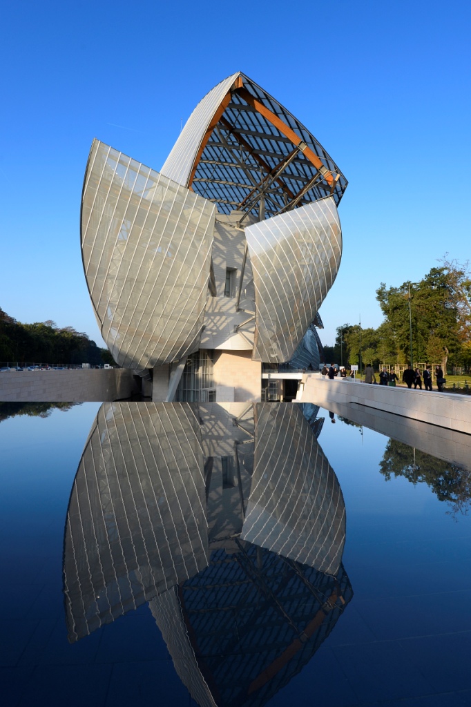 Concebida como una de las obras arquitectónicas más complejas que se haya realizado, el edificio de la Fondation Louis Vuitton (FLV) emerge entre la densa vegetación del jardin d’acclimatation como una síntesis de los materiales que la naturaleza puede ofrecer y que la destrucción creativa ha sabido hacer con ellos. Irregular por donde se lo mire, sus paredes y techos dejan entrever fácilmente que el edificio es fruto de una obsesión por romper la simetría, tornándose un perfecto ejemplar a la vez que reflejo de una París moderna que mudó hace tiempo las pieles del barroco y el neoclasicismo.