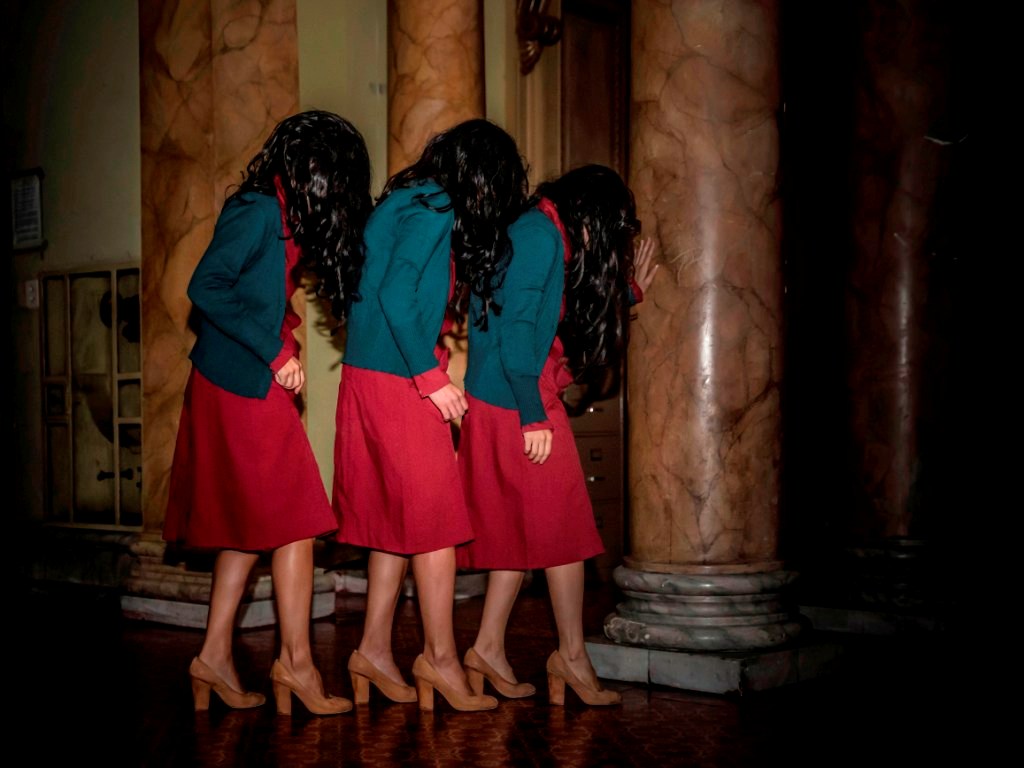 Los desprevenidos espectadores adivinan su presencia por los pasillos del primer piso, siguiendo el taconeo de sus pasos vacilantes y el chirrido de las puertas. De pronto, se produce una triplicidad que la acosa, una llamada que no alcanza a atender, las pilas de libros comienzan a ser más desparejas y a desmoronarse, y los acordes del preludio de Tristán e Isolda, de Richard Wagner, interpelan al espectador y lo llevan hasta los límites de lo pesadillesco.