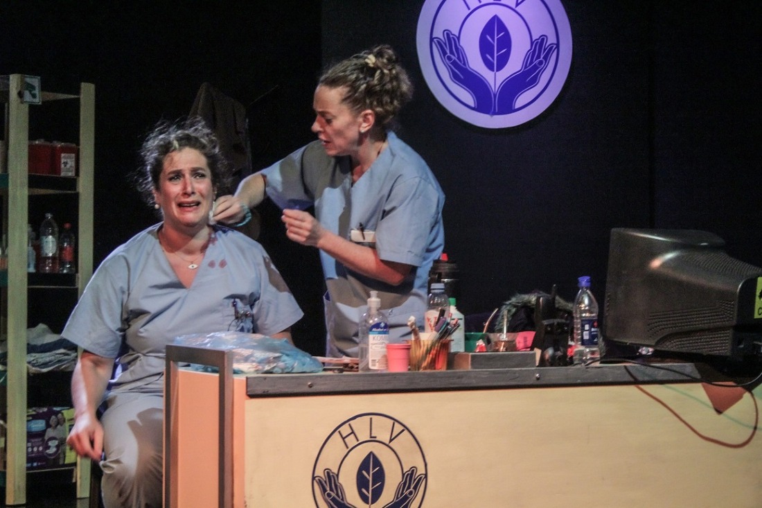 García Lenzi eligió el humor negro con intención. No para esquivar el tema, sino para entrar de lleno. Hablar de enfermeras en Argentina, de sus jornadas eternas, del maltrato institucional y del poco reconocimiento que reciben dentro del sistema sanitario. Te reís a carcajadas y entonces te cae la ficha de lo que pasa en escena. Esa incomodidad es buscada. Es la marca de una dramaturgia que sabe dónde pegar.