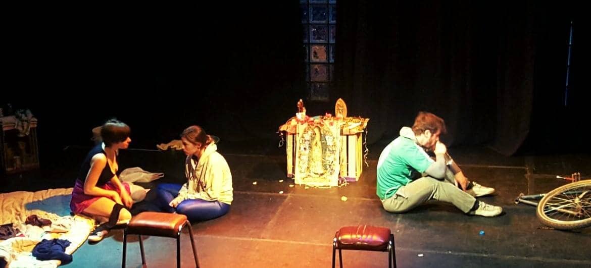 He aquí un particular triángulo amoroso, una relación que juega en el terreno del poliamor. Sin embargo, nada es color de rosa; por el contrario, reproches y riñas son la materia prima de la obra. Dos mujeres exponen su cuerpo para subsistir en la marginalidad y así llevar el pan de cada día a casa, mientras que el hombre es sólo nombre, es sólo figura de virilidad.